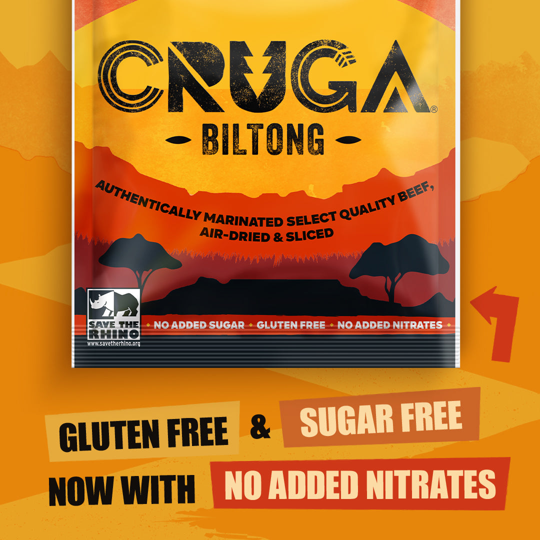 Biltong is a traditional meat snack that originated in Southern Africa. Unlike jerky, CRUGA® Biltong is cured and air-dried, then finished with our signature original or chilli rub. The result? A softer, more tender texture that stays true to the authentic South African style.
