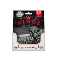 Discover our most succulent and marbled wagyu jerky - Kings Platinum Standard Wagyu Jerky, that's made using 100% premium waygu beef sourced from Britain & Australia (simply there isn't enough wagyu available in Britain or it would all be British).