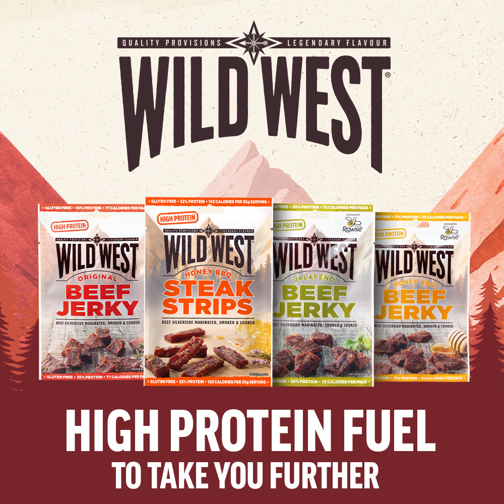High in protein, full of sweet, sticky flavour Honey BBQ flavour and gluten free, too. Wild West Honey BBQ Jerky is perfect for those who want a little extra flavour from their jerky.